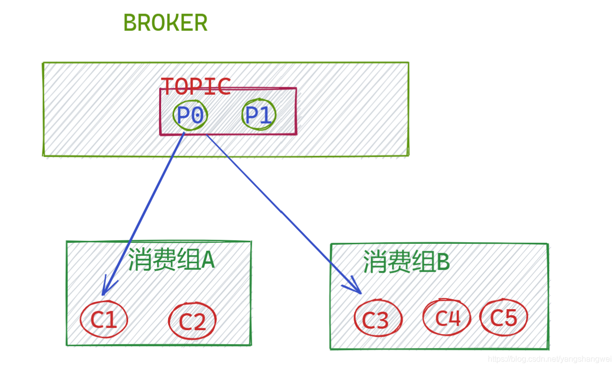 此时,我们再发送一条消息到MOCK_TOPIC,只会被 "MOCK-ATOPIC"的一个 Consumer 消费一次,也同样只会被 “MOCK-BTOPIC” 的一个 Consumer 消费一次。