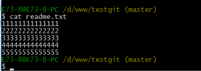 比如我现在在readme.txt文件里面增加一行 内容为555555555555,我们先通过命令查看如下: