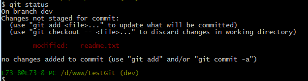 上面的命令告诉我们 readme.txt文件已被修改,但是未被提交的修改。