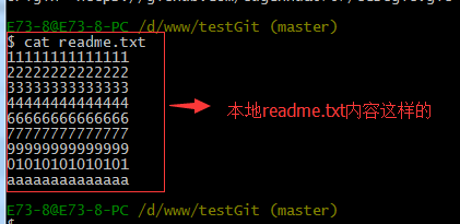 首先我们先来查看下readme.txt内容,接着添加内容77777777,如下: