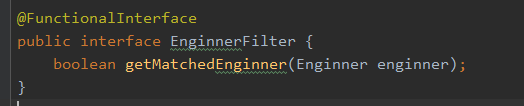EnginnerFilter就是一个标准的函数式接口。 因为 EnginnerFilter 仅仅定义了一个抽象方法getMatchedEnginner.