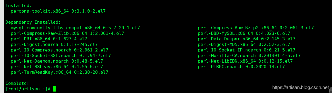 [root@artisan ~]# yum -y install percona-toolkit-3.1.0-2.el7.x86_64.rpm