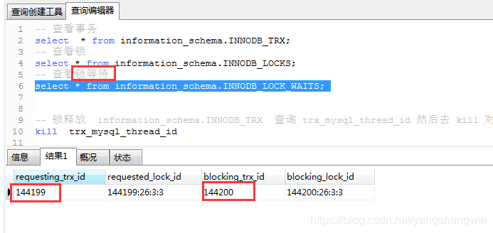 select * from information_schema.INNODB_LOCK_WAITS;