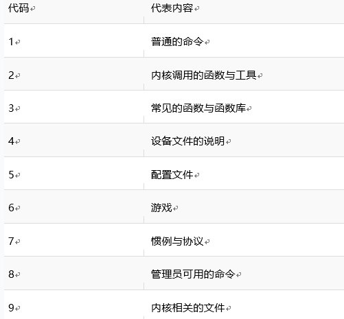man命令的可用帮助文档分类有: