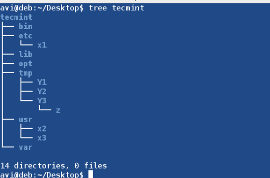 我们可以用上面的方式创建任意复杂的目录树结构。注意这仅仅是一个普通的命令,但是用 ‘{}’ 来创建层级目录。需要的时候如果在 shell 脚本中使用是非常有用的。