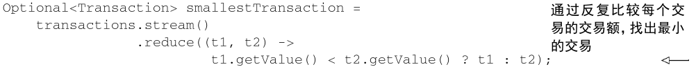 Optional<Transaction> smallestTransaction =