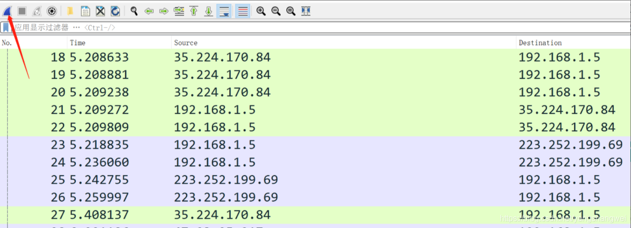 看到IP 地址之后,我们在 Wireshark 中输入表达式,如下图所示: