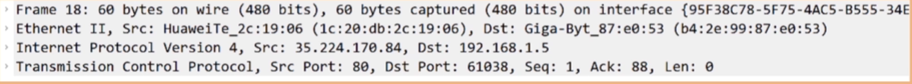 如果你具体选择一个 TCP 协议的捕获,可以看到如下图所示的内容: