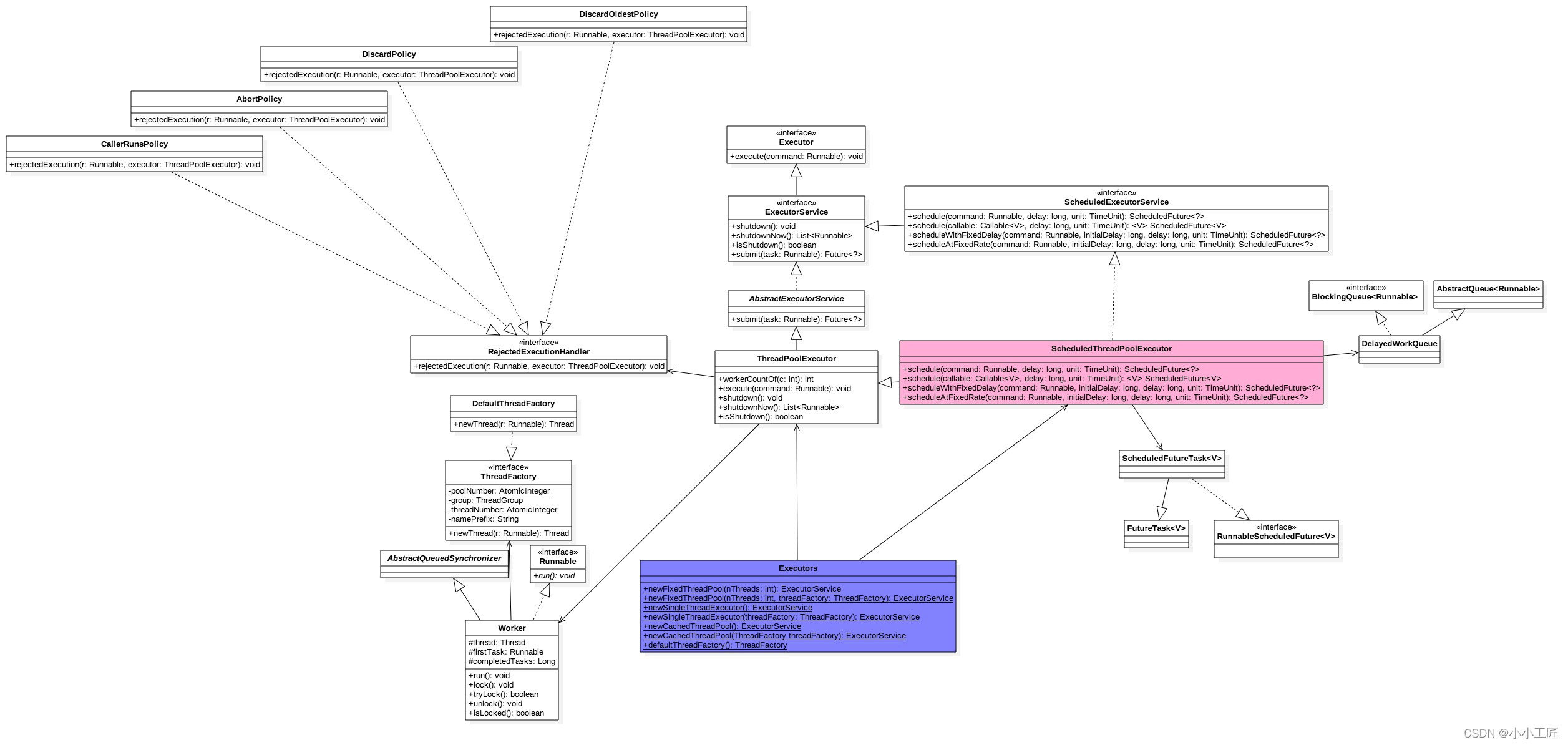 ScheduledThreadPoolExecutor继承了ThreadPoolExecutor并实现了ScheduledExecutorService接口。 -