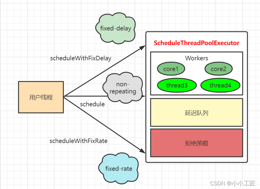 下面来介绍另外一部分功能,也就是ScheduledThreadPoolExecutor的实现,这是一个可以在指定一定延迟时间后或者定时进行任务调度执行的线程池。