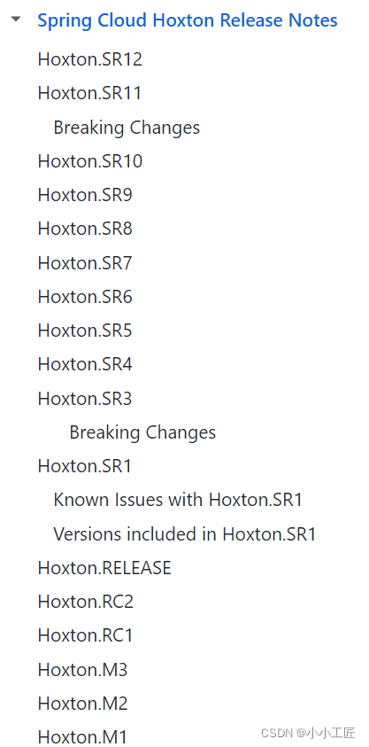 比如还有一种RELEASE版本(正式版本) 比如 Hoxton版本顺序Hoxton.release----->发现bug----->Hoxton.SR1------>发现bug---->Hoxton.SR2…