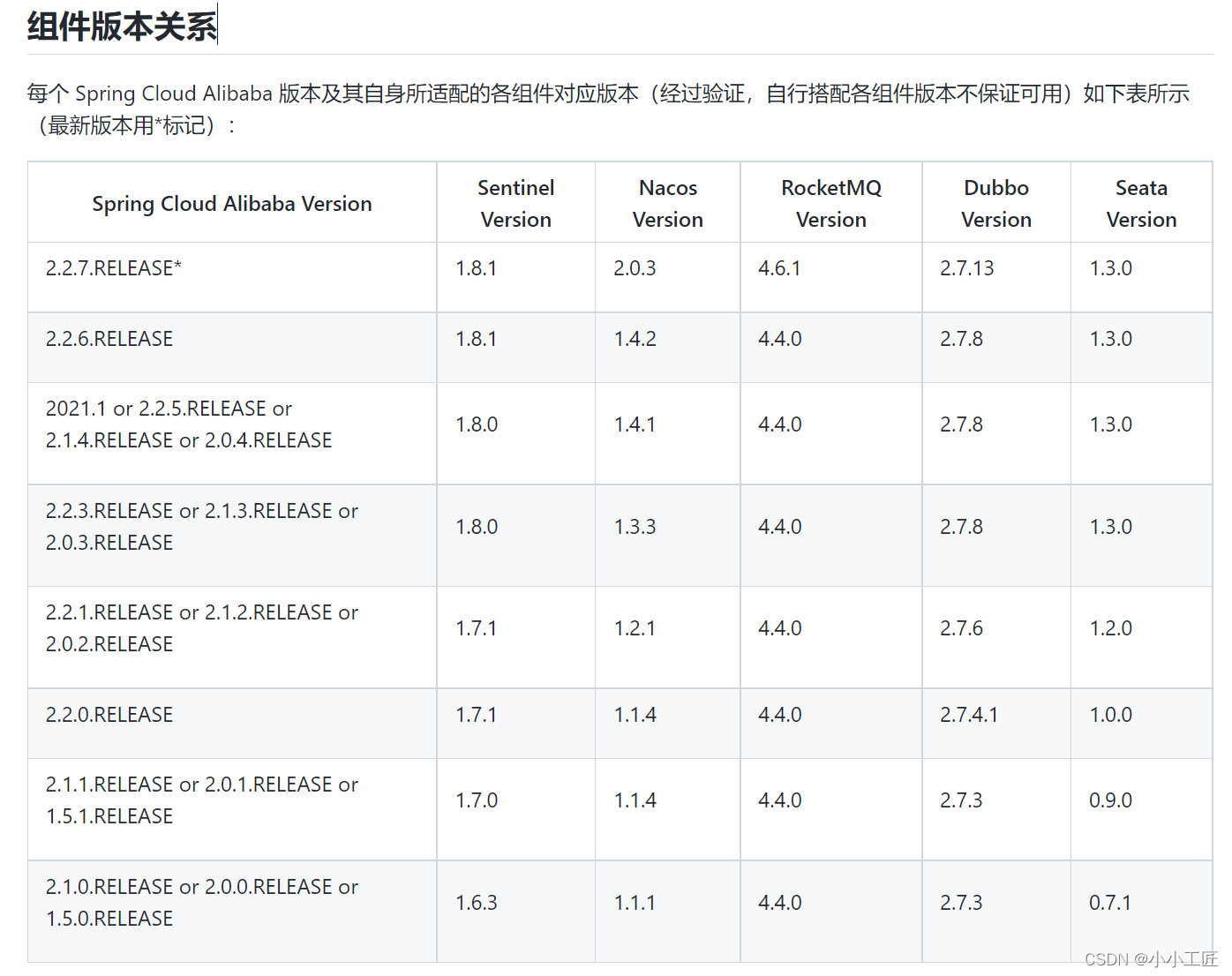 https://github.com/alibaba/spring-cloud-alibaba/wiki/%E7%89%88%E6%9C%AC%E8%AF%B4%E6%98%8E