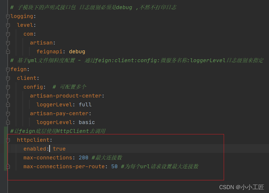# 基于yml文件细粒度配置 - 通过feign:client:config:微服务名称:loggerLevel日志级别来指定