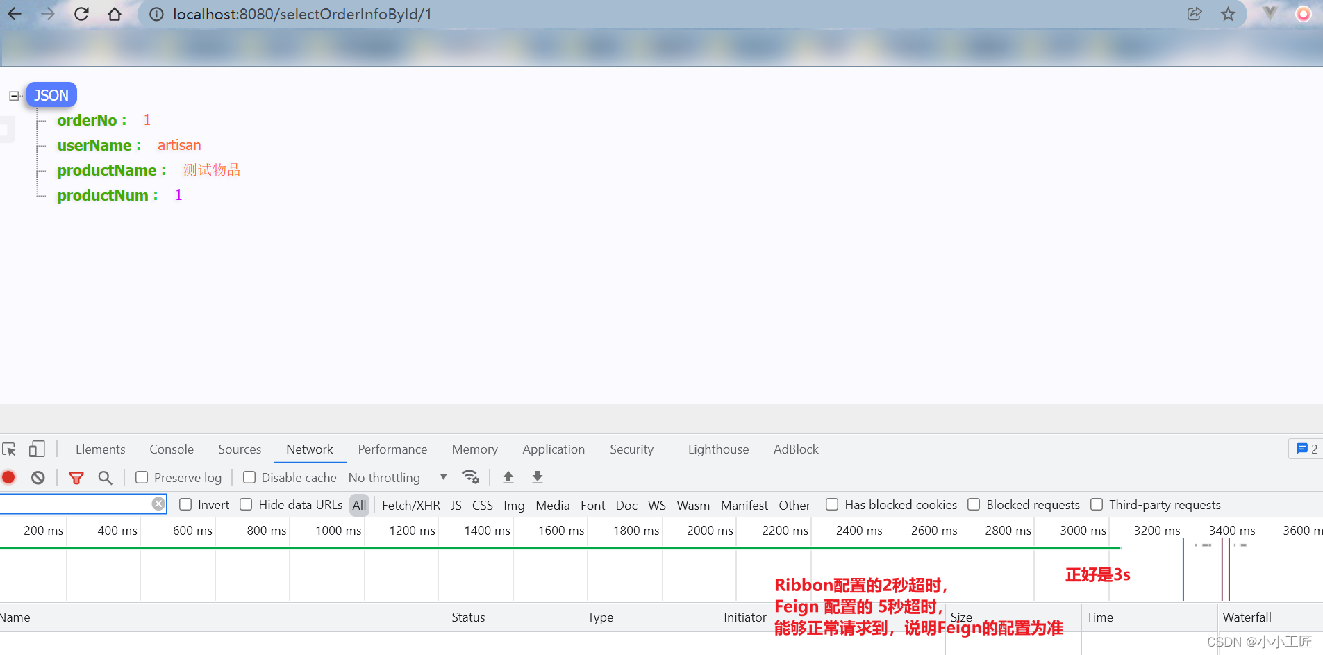 那如果我们换一下呢 (Ribbon 设置 5秒, Feign设置2秒 , Product仍然休眠3秒) 。看下什么情况