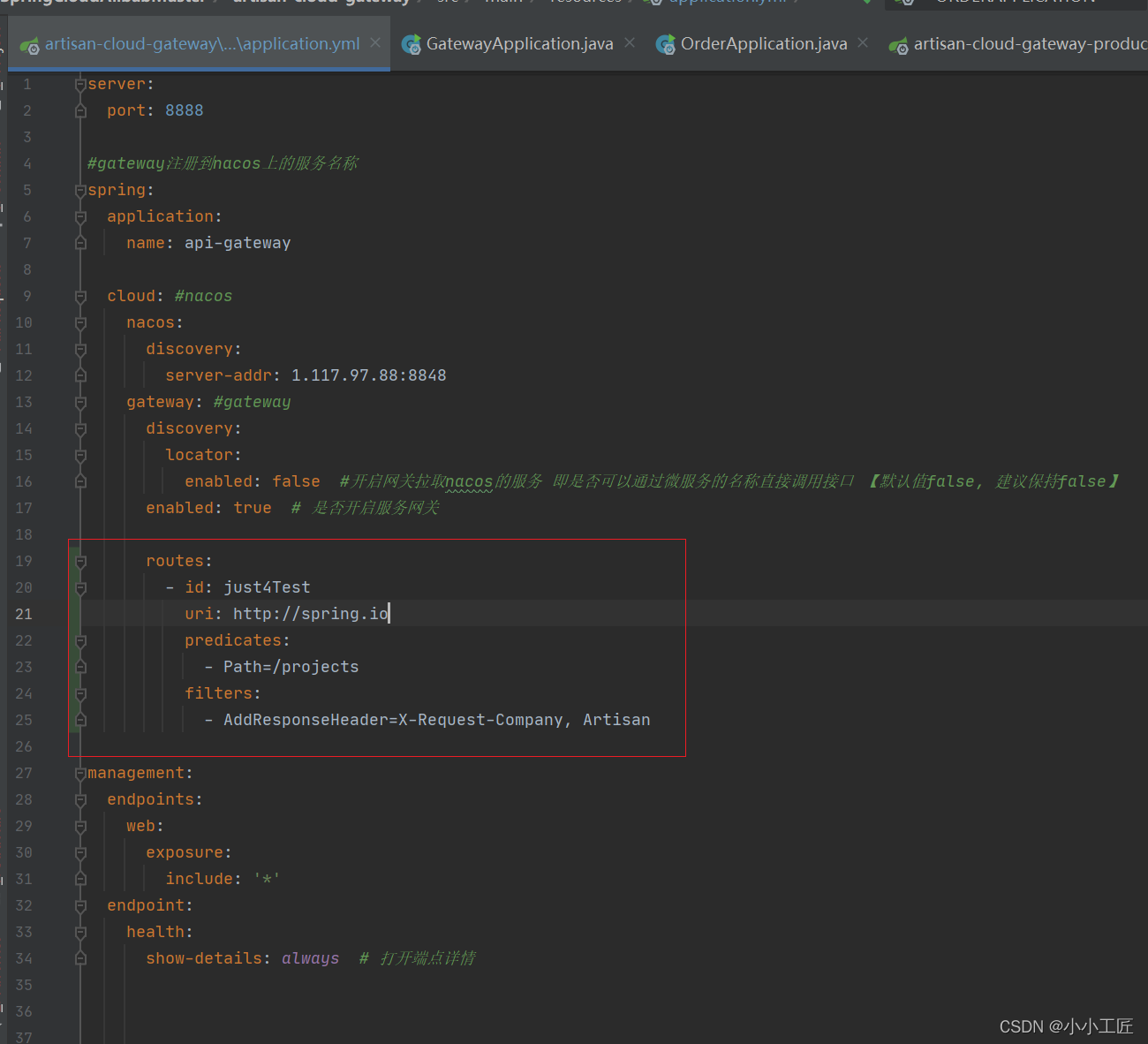 还是继续用 artisan-cloud-gateway 这个工程,