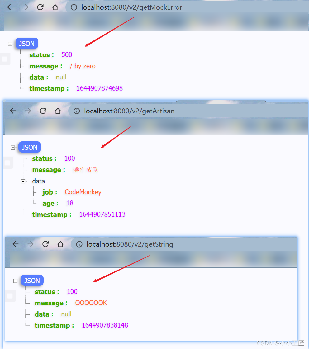 因为全局异常处理器已经帮我们封装好了标准格式,我们只需要直接返回给客户端即可。