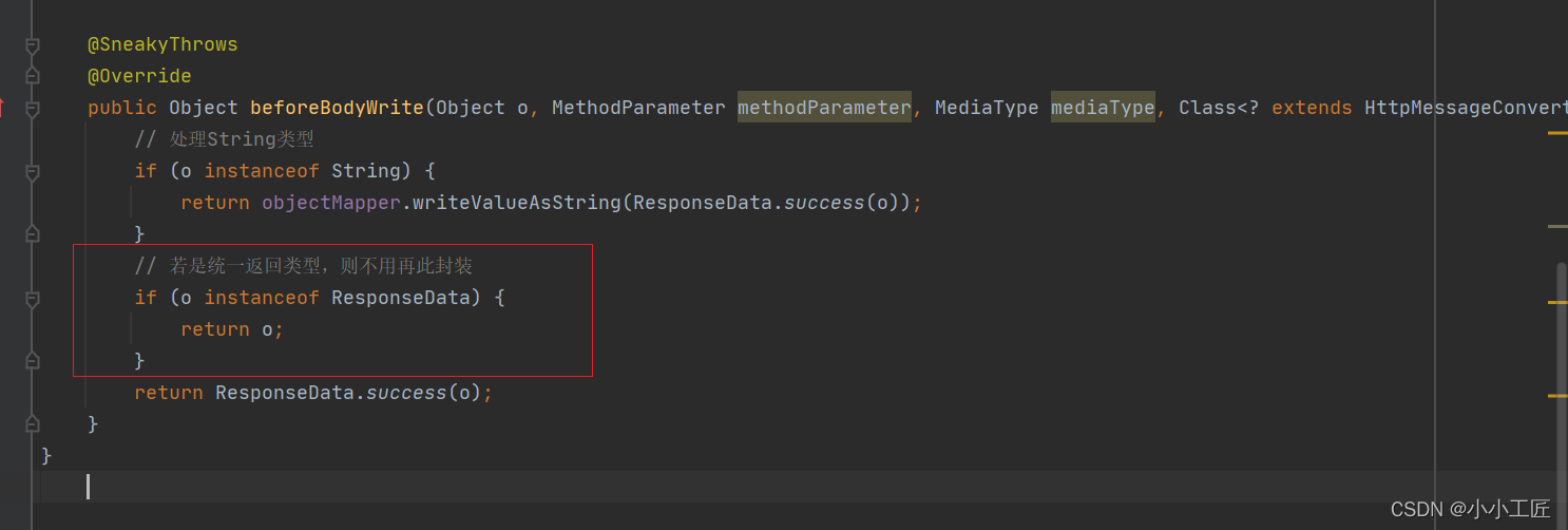 我们不难发现每写一个接口都需要调用ResponseData.success()对结果进行包装 ,程序猿懒啊, 能不写吗