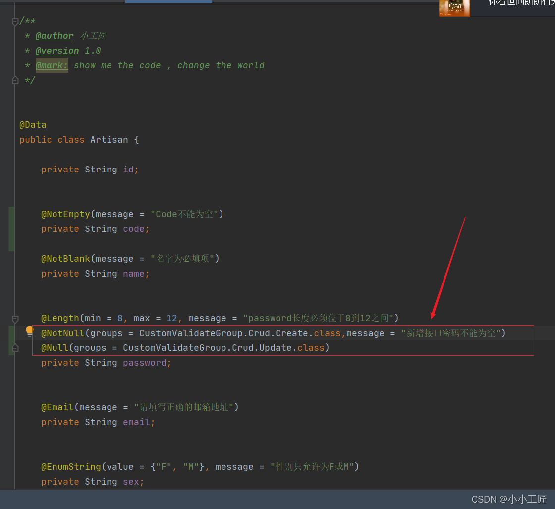 @NotNull(groups = CustomValidateGroup.Crud.Create.class,message = "新增接口密码不能为空")