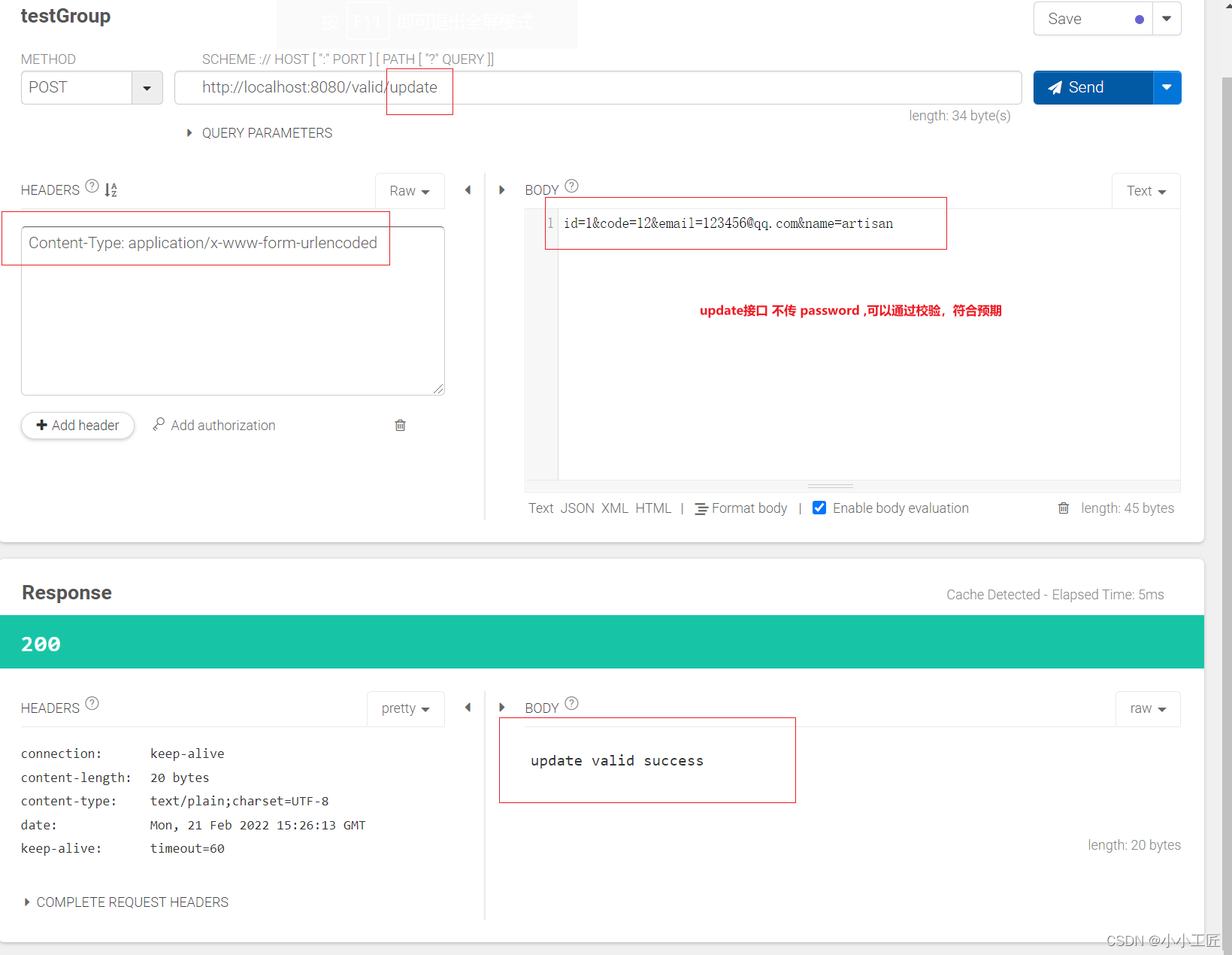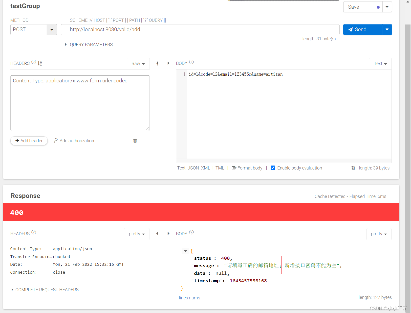 对于未指定分组的则使用的是默认分组 。 比如由于email属于默认分组,而我们的分组接口CustomValidateGroup已经继承了Default分组,所以也是可以对email字段作参数校验的