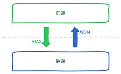 如果将浏览器这一端视为前端,而服务器那一端视为后端的话,可以将以上改进后的MVC模式简化为以下前后端分离模式,如下图所示: