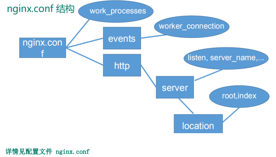 根据上述文件,我们可以很明显的将 nginx.conf 配置文件分为三部分