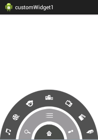 </RelativeLayout> 这里是一个相对布局中嵌套了三个相对布局,嵌套的第一个相对布局负责显示一级菜单,嵌套的第二个相对布局负责显示二级菜单,嵌套的第三个相对布局负责显示三级菜单。三个不同层次的菜单的背景都是弧形。我们通过指定具体的宽高来使三个层次的菜单具有不同的大小。