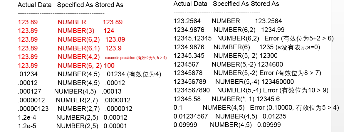 number(5,2)表示该数共有5个有效位,其中小数两位。即范围为-999.99~999.99