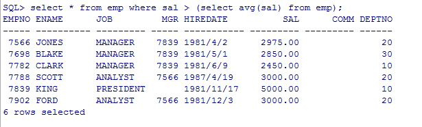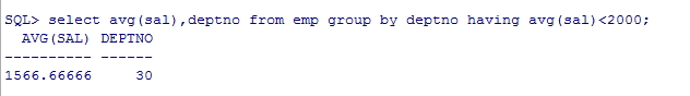 如SELECT deptno, AVG(sal), MAX(sal) FROM emp GROUP by deptno HAVING AVG(sal) < 2000;