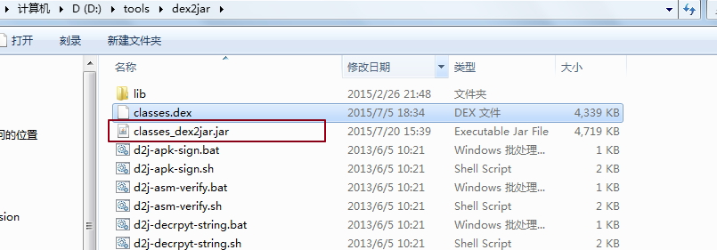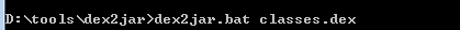 1.解压apk文件,得到classes.dex文件,把这个文件拷贝到dex2jar工具的目录下