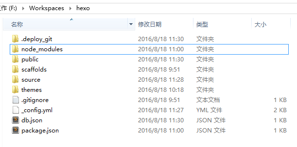 hexo会自动下载一些文件到这个目录,包括node_modules,目录结构如下图: