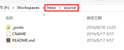 $ cd /f/Workspaces/hexo/