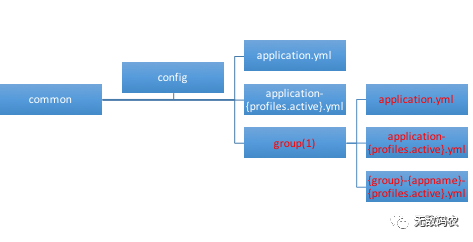 而另一方面,随着微服务越来越多,git仓库中的配置文件数量也会越来越多。为了便于配置的管理,我们需要按照一定的组织方式来组织不同应用类型的配置。在早期所有的应用因为没有分类,所以导致上百个微服务的配置文件放在一个仓库目录,这样一来导致配置文件管理成本增加,另外一方面也会影响ConfigServer的性能,因为某个微服务用不到的配置也会被ConfigServer加载。