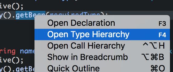 此时我们直接在getBean上 Ctrl+T :