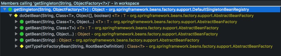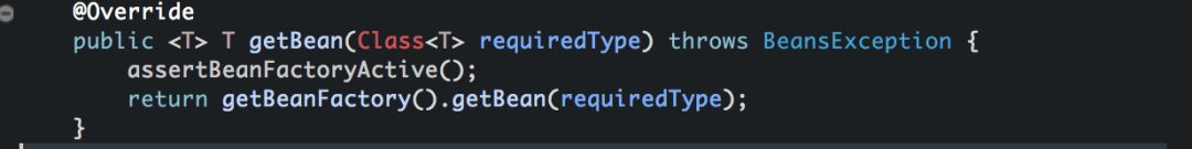 此时如果想查看getBean()方法如何实现,可能会让你失望。结果如下: