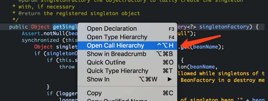 2、Open Call Hierachy 打开调用层级