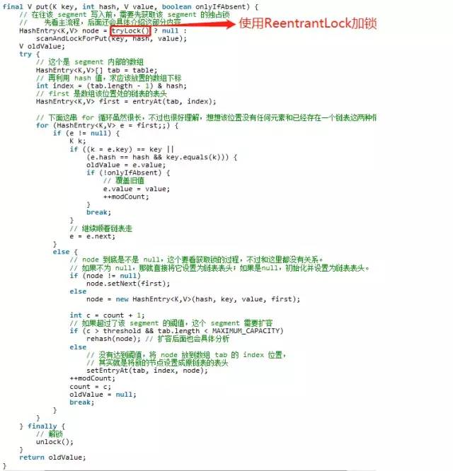 第一层皮很简单,根据 hash值找到 Segment,之后就是 Segment 内部的 put 操作了。