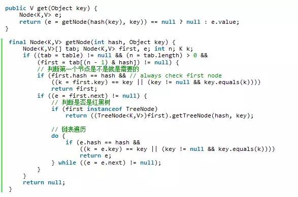 3、判断该元素类型是否是 TreeNode,如果是,用红黑树的方法取数据,如果不是,走第四步。
