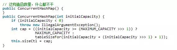 这个初始化方法,通过提供初始容量,计算 sizeCtl,sizeCtl = [(1.5 * initialCapacity + 1,然后向上取最近的2的 n 次方)]。