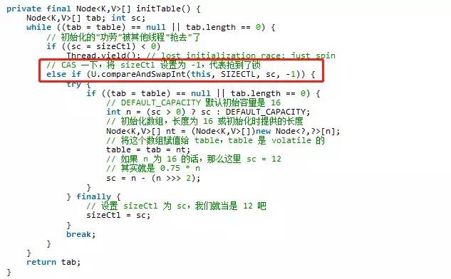 初始化方法中的并发问题是通过对 sizeCtl 进行一个CAS 操作来控制的。