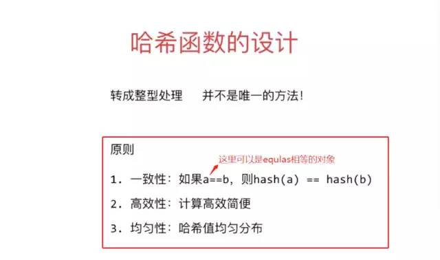 哈希函数的一致性原则是:当两个对象的equals相等,那么他们的hashcode一定相等。