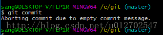 如图所示,我们在vi编辑器中按照既定的格式编辑内容,编辑完成之后保存退出,此时文件就commit成功了。如果在备注信息编辑的过程中我们不想提交了,则直接删除备注信息,保存退出,此时提交就终止了,如下:
