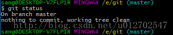 注意,执行commit命令时,我们需要加上提交备注,即-m参数,提交成功之后,我们再执行git status命令,结果如下: