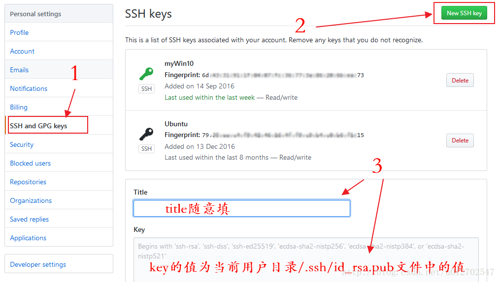 完了之后点击最下面的Add SSH key按钮即可,如此之后,我们的SSH KEY就配置成功了。