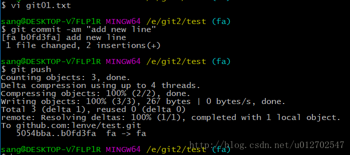 注意由于fa分支就是从远程仓库克隆下来的,所以这里可以不添加-u参数。