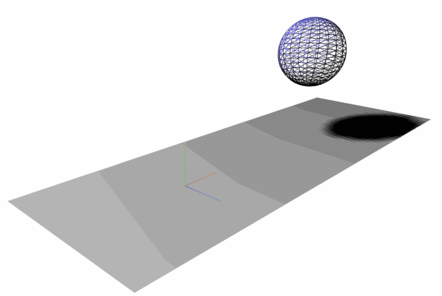 可以看到,球体背光一侧为黑色的,plane离光源远的地方颜色也暗淡(由于gif录制的原因,这里看起来色彩不均匀,实际上是均匀的,读者可以文末下载源码查看)。