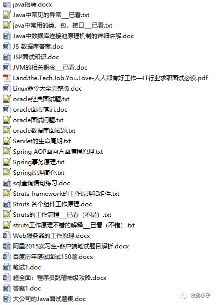 工作这些年,积累了大量的Java面试题,有的是Java博主自己整理的,也有的别人分享给博主的,用海量来形容绝对不为过,部分截图如下: