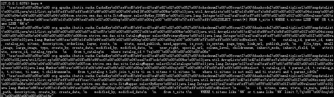 查看Redis数据库 keys *, 会发现多了很多数据,结果如下
