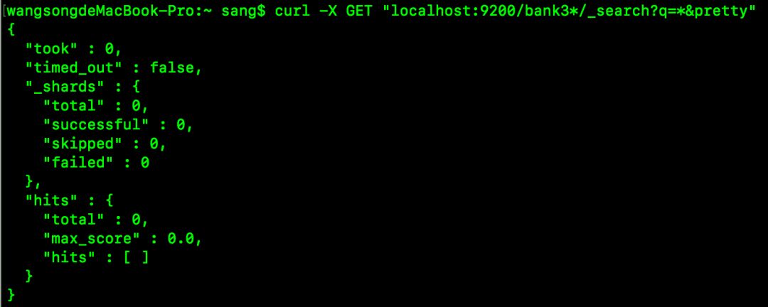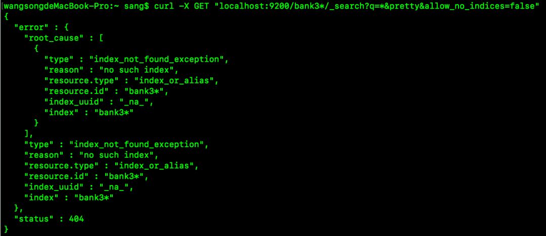 curl -X GET "localhost:9200/bank3*/_search?q=*&pretty&allow_no_indices=false" 执行结果如下: