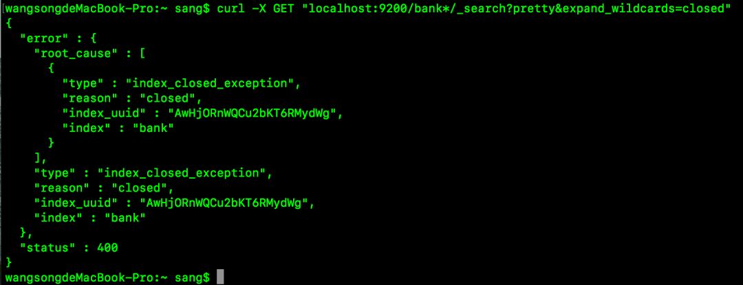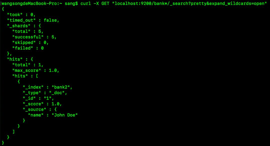 curl -X GET "localhost:9200/bank*/_search?pretty&expand_wildcards=closed" 结果如下:
