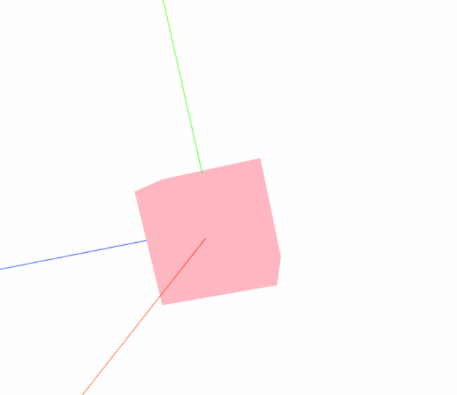 showCube() 可以看到,立方体和坐标轴都是添加到Object3D中,而Object3D则添加到场景中,旋转时候,只需要Object3D旋转即可,效果与上图类似,这里不再赘述,另外,在创建WebGLRenderer渲染器时,还增加了antialias参数,表示抗锯齿。